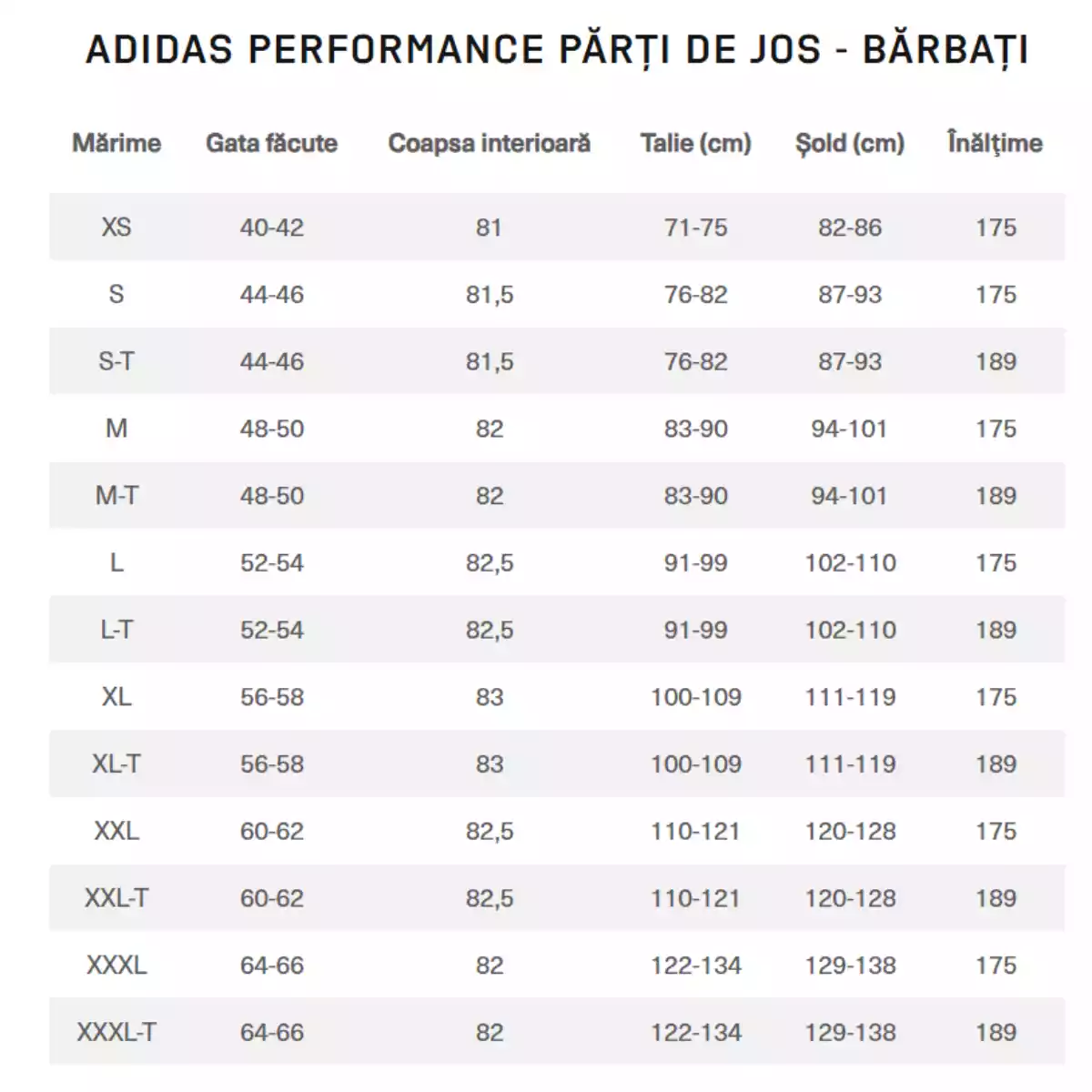 Tabel De Marimi Pantaloni Adidas: